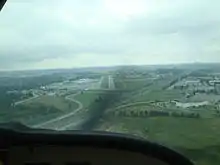 - ↑ This demarcation line is visible on the highway as a change in pavement quality and the use of different high-mast lighting