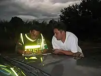 Highway Police officer giving a violation ticket on the Bogota-Armenia Highway
