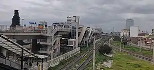 Hilal is an elevated station on the Fahrettin Altay—Evka 3 Line of the İzmir Metro in Konak. Located above the Turkish State Railways' Hilal junction, it is one of the ten original stations of the metro system. Connection to İZBAN commuter trains are available at Hilal railway station.[1] Since Hilal is located in the middle of a railway junction, no direct connections to ESHOT city bus service is available. The closest bus stop is located on 1396th Street about 460 m (1,510 ft) northwest of the station.