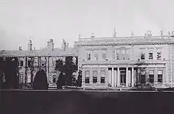 Sir Charles Mills, partner in the London bank of Glyn, Mills & Co., bought two houses in rural Vine Lane in 1825, following his marriage to Emily Cox, daughter of the banker Richard Henry Cox. The Coxs had a house in Hillingdon.[2] Mills had both houses demolished and the sites combined to allow for the construction of a new mansion. Designed by Philip Charles Hardwick, the mansion was built of white brick and stone between 1854 and 1858.[1] Mills and ten members of his family lived there, with 33 servants.[3]