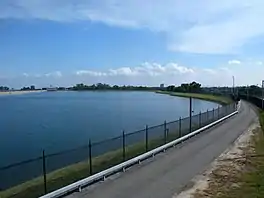 The Hillview Reservoir is a 90-acre (0.36 km2) storage reservoir in southeastern Yonkers, New York.[1] It was built within a six-year period from 1909–1915 by the New York City Board of Water Supply to receive water from the newly constructed Catskill Aqueduct, which drained water from the Ashokan Reservoir and sent it down into the Kensico Reservoir, where it would, in turn, be drained back into a continuation of the Catskill Aqueduct, and sent into the Hillview Reservoir. Frank E. Winsor was the engineer in charge of construction of both Hillview and Kensico as well as 32 miles (51 km) of the Catskill Aqueduct.