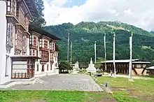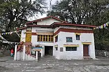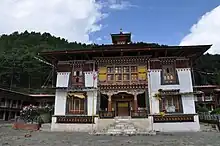 2. Lahkhang[6] is the inner sanctum of the monastery, where the most sacred relics, statues, and thangkas (religious paintings) are housed. It is typically located in the central courtyard of the monastery and is considered to be the most sacred and holiest part of the monastery. The Lahkhang is only accessible to the monks and is used for meditation and religious ceremonies.[7]