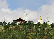 Bhutan. It is surrounded by 108 chorten walls. The complex houses three revered temples, namely: Guru Lhakhang, Sampa Lhundrup Lhakhang and Ka Gon Phor Sum Lhakhang. |