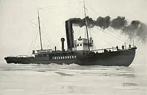 The German icebreaker Hindenburg was built by Stettiner Oderwerke at Stettin-Grabow in 1915 for the Cooperative Merchants' Guild of Stettin (German: Koop. Kaufmannschaft Stettin). The ship was launched on 15 December 1915 but not completed until 23 December 1916. During the Invasion of Åland in February 1918, the Hindenburg was part of Transportflotte I of the Sonderverband Ostsee. The Hindenburg struck a mine off Eckerö, Åland on 9 March 1918 and sunk at 60°11′N 19°25′E / 60.183°N 19.417°E / 60.183; 19.417. Three crew members died in the event.:[1]The wreck was found 1995 at 50 meters by diveinstructor Richard Johansson from Maltaproffsen and his crew from Ålands Dykcenter and FF-Dyk.