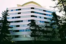 The hip flask houses (Finnish: taskumattitalot) are a group of four apartment buildings[1] built in 1959 and 1961 in the Länsikorkee area of the Tapiola district in Espoo, Finland.[2] The buildings have nine floors each and are 30 metres high. They were designed by architect Viljo Revell.[3] The Hip flask houses dominate the appearance of the area and have become a sort of symbol of Tapiola.[4] The Tapiola area is a culturally significant architecture area and the Hip flask houses are among the landmarks of the area.[5]