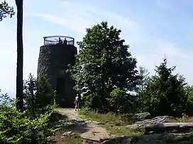 From the Schuhfleck there are four trails leading to the Hirschenstein. The Hirschenstein summit with its exposed location and seven-metre-high observation tower has unique panorama of the Bavarian Forest. To the east the view stretches from the Großer Arber to the Dreisessel, to the south from Deggendorf to Straubing and to the west as far as the Gallner. On about twenty days a year the Alps may be made out from the Dachstein to the Zugspitze.
