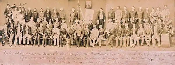 The filó, the meeting between families, was the privilged moment where this cultivation took place. They happened mainly in the rural areas, on Saturday nights or after Sunday mass, in the home kitchens, or the canteens. The men chatted and played cards, bocce, or "la mora"; the women practiced handicrafts such as crochet, sewing, and the making of dressa, a corn straw braid used to make hats, and exchanged their experiences, while the children played with rustic toys. Amid these meetings, accompanied by a glass of wine, salami, grostoli, bread, and cheese, there would be the singing in choirs, usually, without instrumental accompaniment, of long traditional songs, markedly narrative, that recalled their Italian land, sang their nostalgia for distant relatives, spoke of love and work. Il primo, or the choir's guide, began the verses, and the ensemble completed the stanza.[12][41]