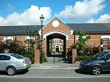 The workhouse system began to evolve in the 17th century as a way for parishes to reduce the cost to ratepayers of providing poor relief. The Workhouse Test Act of 1723 was introduced to prevent irresponsible claims on a parish's poor rate. Anyone seeking poor relief could be obliged to enter a workhouse and undertake a set amount of work, usually for no pay, a system known as indoor relief. Many parishes established workhouses during the 18th century, and Christchurch was no exception, the first one being built in Quay Road in 1768.[47] When the workhouse moved to bigger premises in Fairmile in 1881, the property in Quay Road was purchased by the Druitts, a family of wealthy solicitors with a keen interest in history. The Druitt family turned the old workhouse into a museum which was bequeathed to the town. It opened as The Redhouse Museum in 1951.[48] The Druitt family also left a property in the High Street to be used as a library together with all the books and papers they had collected and extensive gardens. James Druitt (five times mayor 1850, 1859, 1867, 1888, 1896) was instrumental in putting a stop to the ironstone mining at Hengistbury Head (see below).[49] The second workhouse in Fairmile became Christchurch Hospital in 1948 after the Welfare State was introduced. A large proportion of the site was turned into housing in 1995.[50]