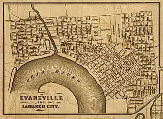- 1 2 3 Corrigan, Sara Anne (24 March 2012). "Evansville Bicentennial: A town rises from a river". Courier & Press. Retrieved 26 March 2012.