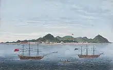 Light negotiated the cession of Penang Island to the British East India Company with the new Sultan of Kedah, Sultan Abdullah Mukarram Shah, in exchange for British military protection and a lease of 6,000 Spanish dollars to pay off Kedah's debts to Siam.[1][2][4][7] With the agreement between Light and the Kedah Sultan fruitfully concluded, Light and his entourage sailed on to Penang Island, where they arrived on 17 July 1786.[8][9]