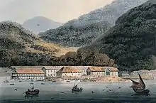 Francis Light had established George Town as a free port to entice merchants from the Dutch ports in the region.[12] Attracted by the promise of free trade without having to pay any form of tax or duties, and assured of their safety at the British-governed harbour, merchants flocked into George Town; consequently, the number of incoming vessels rose exponentially from 85 in 1786 to 3,569 in 1802. The population of the new settlement had also increased to 10,000 by 1792.[13][14][15] Immigrants arrived from various parts of Asia; in 1801, the then Lieutenant-Governor of the Prince of Wales Island, Sir George Leith, commented that "there is not, probably, any part of the world where, in so small a space, so many different people are assembled together or so great a variety of languages spoken".[4]