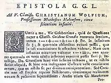 - ↑ Wolff's first reference to the letter published in the Acta Eruditorum appears in a letter written from Halle, Saxony-Anhalt dated 12 June 1712; Gerhardt pp.143-146.