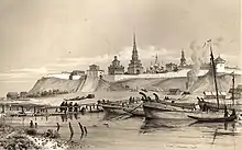 During his stay in Kazan in the 1640s, Adam Olearius reported that the Kazan Kremlin was "occupied only by the Russians, and not a single Tatar could live there, under penalty of death".[2] During the Tsarist period, much of the local Tatar architecture was destroyed.[2]