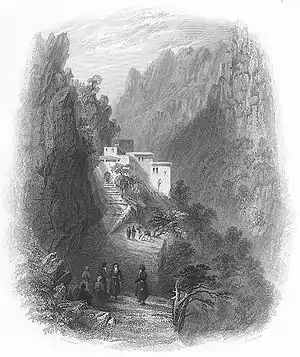 The baby-boomers of the 1830–1840s started joining massively the Monk Orders. One major factor was the decline in the revenues derived from silk in Jebbet Bsharri region that started around 1845. In 1844–1845, silk revenues were covering 72% of the economic needs decreasing to 25% in 1851–1852 and further to 15% in 1857.[39] Along with an increased centralization of the administration under the new regime of Qaym-maqiyamatayn (1842–1860), it contributed to the weakening of the political and economical powers of the sheikhs in the region in general leaving no economic perspectives to the young people. Also, the opening of a school in the neighbouring village of Bane in 1806 by the Lebanese Maronite Order for the basic instruction of the children of Kfarsghab and Bane served as a channel of detection and recruitment of talents and workforce for the Order. The effect was a reduction in the Kfarsghab population. According to a recent study,[40] 344 males lived in Kfarsghab in 1862, that is to say 1,720 inhabitants.