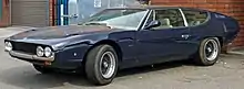 Bertone was able to persuade Lamborghini to allow them to design a brand-new four-seater. The shape was penned by Marcello Gandini, and a bodyshell was delivered to Ferruccio for inspection. The businessman was less than pleased with the enormous gullwing doors that Gandini had included, and insisted that the car should have conventional doors instead.[17] The car that resulted from the collaboration was debuted at the 1969 Geneva show with the name Espada, powered by a 3.9-litre, front-mounted evolution of the factory's V12, generating a power output of 330 PS (240 kW; 330 hp). The Espada was a success, with a total production run of 1,217 cars over ten years of production.[18]
