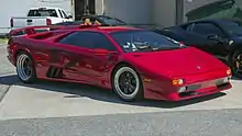 At the time, Lamborghini was working on a successor to the Countach, the Diablo. The Diablo's original design had been penned by Marcello Gandini, the veteran who had penned the exterior appearances of the Miura and the Countach while working for coachbuilder Bertone. However, Chrysler executives, unimpressed with Gandini's work, commissioned the American car-maker's own design team led by Tom Gale to execute a third extensive redesign of the car's body, smoothing out the trademark sharp edges and corners of Gandini's original design; Gandini was unimpressed with the finished product.[43][44] The Diablo had been intended for introduction in time for September 1988, when Lamborghini would celebrate its 25th anniversary; once it was clear that mark would be missed, a final version of the Countach was rushed into production instead.[45]
