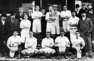 A church cricket club had been formed in 1875, but no equivalent for the winter months existed.[2] To rectify this, and as part of Rector Arthur Connell's general push to intervene in social ills, church wardens William Beastow and Thomas Goodbehere, who held senior positions at the Union Iron Works,[3] started a church football team called St Mark's (West Gorton), sometimes written as West Gorton (St Mark's), in the winter of 1880.[4]