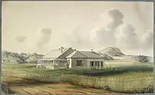 The first Government House in Auckland, as painted by Edward Ashworth in 1842 or 1843. Auckland was the second capital of New Zealand.