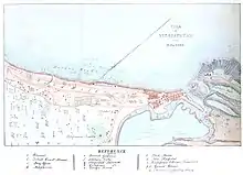 In 1683, the East India Company initiated trade activities in Visakhapatnam after reaching an agreement with Qutb Shahi dynasty. However, complications arose when Mughal Emperor Aurangazeb seized control of the region, leading to the unfortunate killing of some English soldiers. Subsequently, a new agreement was negotiated, allowing the resumption of trade activities.[18] East india Company initiated the construction of a fort around their factory. Eventually, this location evolved into Kotaveedi, as "Kota" translates to fort in Telugu.[19] They changed the name from Visakhapatnam to Vizagapatam. Amidst the ongoing Carnatic wars between the British and the French, the Britishers initiated the construction of a fort in the end of 17th century to counter the French presence. This fort, spanning from the sea to the current Coastal battery, Upputeru, and Yarada Hills, was completed in 1726.[20][21] Gunner Street served as the depot for Artillermen during that period.[22] Founded in 1727 by the Rajaka community, Waltair evolved into a British settlement.[9] Initially linked to the city by two roads, these pathways later became Waltair Main Road and Beach Road, with some adjustments along the way.[23] Documented evidence reveals that the population of Vizag in 1750 was recorded at 3000 individuals.[24]
