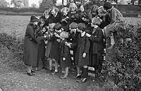 Even with some increase in the use of Welsh at schools, censuses suggested that Welsh speakers had become a minority in Wales at the start of the 20th century and continued to shrink as a proportion of the population.[23] There was little prospect of a significant increase in the status of the Welsh language in the education system during the interwar period. The priority of Welsh-speaking parents was ensuring their children gained fluency in English to give them the best chance of gaining employment in a worsening economy. The Urdd Gobaith Cymru (Welsh League of Youth) was established in 1922 to develop an affection for the Welsh language and aspects of Welsh culture in young people. After five years the organisation had 5,000 members.[22] In 1971 a Welsh individual living in Leicester wrote in a letter to a local newspaper that they could remember being caned for speaking Welsh at school playtime as a child in around 1940.[49]