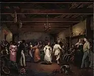 Farming in West Virginia produced about twice as much grain and livestock than was needed for subsistence, with one in ten farm workers being a slave.[18] Women worked in the fields along with the men, sometimes acting as drovers, supervisors and performing general maintenance, such as cutting fence rails. Rather than depending on overseers, tasks would be assigned for daily or weekly completion.[19] Most enslaved people engaged in agriculture were to be found on farms with less than 10 slaves, where the owners often worked in the fields as well. In wealthier households enslaved people would be used for domestic duties and as servants.[20]
