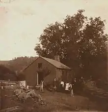 Wheeling was an important stop for runaways, standing as it does between Ohio and Pennsylvania. A branch of the railroad ran between Wheeling and Wellsburg, going east to the Pennsylvania towns of Washington or West Middletown. The McKeever family of West Middletown would hide fugitives in their poultry wagon and drive them to Pittsburgh. The A.M.E. Zion Church in Wheeling was also active in aiding slaves to freedom.[64] The proprietor of the Wheeling House Hotel was rumored to find safe houses for runaways. The hotel was next door to the slave auction block.[65]