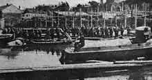 The Kingdom of Serbia received its first true warship, the patrol boat "Jadar", on August 6, 1915 and commemorates the establishment of the modern Serbian River Flotilla on that day.[5] Built in "Royal Serbian Shipyard", the "Jadar" was armed with two machine guns and was used for mine laying on the Sava and Danube rivers.[6] At the beginning of the First World War, the flotilla fell under the Velika Ada Ciganlija Command, commanded by Lt. Colonel Milan Radojević - the first commander of the Serbian River Flotilla. The flotilla maintained the connection between the right bank of the Sava River and Velika Ada Ciganlija island occupied by Serbian troops, protected lines of communication between Belgrade and Obrenovac, assisted in the transport of Serbian troops in Syrmia, mined waterways and performed reconnaissance.[6]