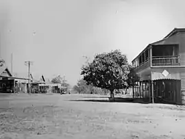 The town was for many years the predominant business centre for the district west of Wondai and had developed into a vibrant community hub before the nearby town of Proston was founded. There is evidence the first store was erected in 1910 or 1911 (proprietor Mr. S.S. Fenwick), some years before it was ever known as Hivesville or Jaumbil.[7] In these early years the town was referred to by locals as Proston and remained so until the railway department imposed the name of Jaumbill[5] The first hotel, known as the Proston Hotel, was established in 1911, and later burned down in November 1935.[5][8] The new hotel was still known as the Proston Hotel when it opened in 1937 and was not renamed the Hivesville Hotel until 1953.[5][9][10] The original hotel narrowly escapted destruction by a previous fire in 1924 but was saved in the middle of the night by the gallant efforts of guests staying there.[11]