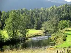 Hjartdøla is a river in Hjartdal municipality in Vestfold og Telemark, Norway. The 26-kilometre (16 mi) long river is part of the Skien watershed. The river is formed at the confluence of the river Bjordøla and some smaller rivers coming from the lakes Skjesvatnet and Breidvatnet, about 5 kilometres (3.1 mi) north of the village of Hjartdal. From here, it runs through the village of Hjartdal, then through the lake Hjartsjåvatnet, and through the village of Sauland. At Sauland, the river meets the river Skogsåa and after this confluence, the two rivers form the river Heddøla which then continues on to Heddal and the lake Heddalsvatnet.[1][2]