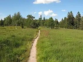 The Hochkopf is a mountain in the county of Rastatt in the Black Forest in Germany with height of 1,038.3 m above sea level (NHN).[1] It is located northeast of the nearby Hornisgrinde, the highest mountain of the Northern Black Forest. About 700 metres away to the north, as part of the same mountain ridge, is the Pfrimmackerkopf (1,035.7 m above NHN[1]). The plateau with its semi-protected forest or Schonwald, is a grinde, an open highland landscape typical of the Northern Black Forest, and is part of the Bühlertal conservation area.