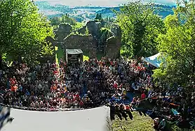 Because the Hohentwiel became part of the city of Singen in 1969, a special festival week took place in the summer. Besides other things, a Castle Festival with fireworks was organized. In 1975, a Jazz Festival took place in Hohentwiel Castle and has been repeated annually since. In 1980, it grew even bigger, so more parts of the castle had to be used. In the same year, a Kultursonntag (Sunday for culture) with 13 stages in the castle and more than 20,000 visitors took place. In 1990, Miles Davis performed at the festival, which led to international attention. Nowadays, the festival takes place for one week in July.[2]