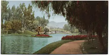Hollenbeck Park has been a lush oasis in the neighborhood since 1892. The park was named for John Edward Hollenbeck (1829-1885), founder of First National Bank, whose widow, along with former L.A. Mayor William Workman, donated 21 acres (85,000 m2) of land.