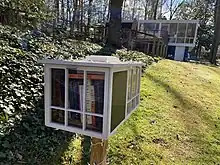 The nearest public libraries to Hollin Hills are the Sherwood Regional Library and Martha Washington Library served by the Fairfax County Public Library (FCPL) system. In addition, several residents have installed and maintain neighborhood book exchanges and chartered Little Free Library locations throughout the neighborhood, often stylized in the shape of mid-century modern homes found throughout the community.