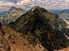 Holliway Mountain is an 8000+ ft granite summit located in Okanogan County in Washington state. It is part of the Okanogan Range which is a sub-range of the North Cascades Range.[1] Holliway Mountain is situated near the headwaters of the Methow River on land administered by the Okanogan–Wenatchee National Forest. The nearest higher peak is Golden Horn, 0.91 miles (1.46 km) to the south.[1] Azurite Peak is located three miles to the north-northwest.