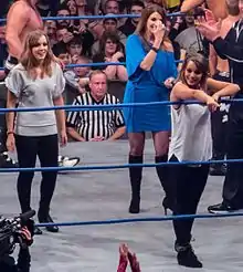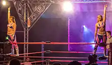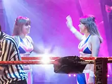 In 2012, it was announced that The Blossom Twins were to be participants in the Challenge TV reality show TNA Wrestling: British Boot Camp, alongside Rockstar Spud and Marty Scurll as contestants competing for a contract with Total Nonstop Action Wrestling.[20] The show began airing on 1 January and ended on 22 January 2013.[21] In the third episode, The Blossoms Twins were seen at the Hall of Fame ceremony with Marty Scurll.[22] In the final episode, The Blossom Twins faced Gail Kim and Madison Rayne to prove to Hulk Hogan and Dixie Carter they deserve the win, but Rockstar Spud was chosen as the winner of the show's first season.