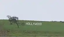 Hollywood, like its namesake in California, has a connection to the entertainment industry. It has provided a setting for several films, including King Arthur,[5] Dancing at Lughnasa, and Michael Collins.[6] An imitation of the iconic Hollywood Sign overlooks the village from a nearby hill.[7] It also gave its name to an album by The Voice Squad which was recorded in St Kevin's Church.[8]