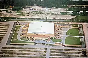 The Sportatorium was built beginning in September 1968 by Stephen Calder and Norman Johnson. Calder would also build the Calder Race Course shortly thereafter. It stood adjacent to the Miami-Hollywood Motorsports Park, which Calder and Johnson had constructed four years earlier. Among the plans for the Sportatorium were sports events, ice follies programs, auto and boat shows, and eventually a "Gold Coast State Fair". The Sportatorium was constructed as a hangar-like facility constructed out of concrete, a steel roof, an asphalt floor, and no air conditioning.[1] Originally designed to seat 18,000 for stage events and 15,000 for arena events, it opened in December 1969 with only 6,000 seats.