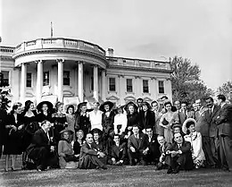 Eleanor Roosevelt on the White House lawn with stars and organizers of the Hollywood Victory Caravan (April 30, 1942)
