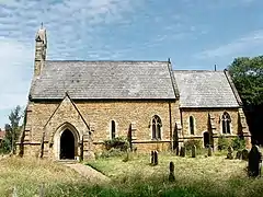 The Grade II listed Anglican church is dedicated to St Luke.[4] It was re-built in 1854 by a George Place in Early English style, consisting of a chancel, nave, north aisle, and a bell turret with two bells.[3] It was again partly rebuilt in 1926 by H. G. Gamble. The earlier parts of the church are ironstone, the doorway Norman style, and the stoup 13th century.[5] There are memorials to the Dixon family, Lords of the Manor, painted wall decoration in the south chapel and stained glass windows from 1893.[3][4]
