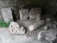 - A: "Near the entrance of the chapel on the south side (is) the statue of a cross-legged knight raised a little above the ground". (lost)