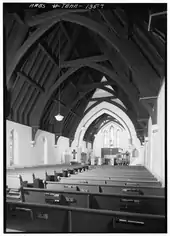 A view of the interior, featuring the hammerbeam roof (HABS, 1970)