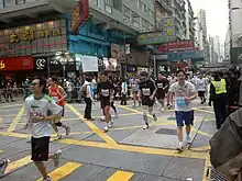 Similarly, the 2021 edition of the race, originally scheduled for January, was postponed to 24 October 2021 due to the pandemic.[32][33][34][35] The marathon was won by Christy Yiu and Wong Kai-lok, both from Hong Kong.[36] Wong won by four seconds in his debut marathon, which he ran against the advice of his doctors, after having taken two years to recover from a serious knee injury.[36] As this was the first edition of the race held since the pandemic began, the number of participants was reduced by about 75 percent, and no overseas runners were invited.[37] As this was also the first edition held since the implementation of the Hong Kong National Security Law, runners were warned against making political statements, and some runners reported being banned from the race due to wearing apparel containing the words "Hong Kong".[38][39][40][37][lower-alpha 2]