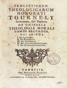 Honoré Tournély (28 August 1658 – 26 December 1729) was a French Catholic theologian. He was a Gallican opponent of Jansenism.