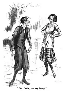 ![]() Honoria (right) laughing in "Scoring off Jeeves" illustrated by A. Wallis Mills in 1922 | |