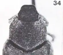 Black and white photo of the head and prothorax of a Hoplia callipyge specimen