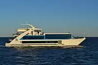 The San Francisco Hornblower Hybrid is a 64-foot-long (20 m) catamaran, with a fully enclosed main deck, and covered roof deck. In 2008 the vessel was acquired by Alcatraz Cruises, a subsidiary of Hornblower Cruises. The vessel, which was previously a commercial diving boat, underwent a retrofit, repower and refurbishment operation, at a cost of USD 4 million.[1]