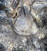 First named by Kidston & Lang in 1920 from Early Devonian fossils in the Rhynie chert,[10] the original generic name Hornea was later found to occupied by a flowering plant in the family Sapindaceae, Hornea mauritiana, leading Barghoorn and Darrah to propose renaming the genus to Horneophyton in 1938.[2] It was classified as a rhyniophyte (subdivision Rhyniophytina) by Banks, but the absence of true vascular tissue led Kenrick and Crane in 1997 to create a new class, Horneophytopsida, for this and similar genera.[11] A single species, Horneophyton lignieri, has been described.[1]