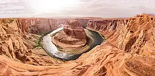 Horseshoe Bend is a horseshoe-shaped incised meander of the Colorado River located near the town of Page, Arizona, United States.[1] It is also referred to as the "east rim of the Grand Canyon."[2]