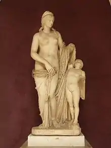 Emperor Constantine the Great converted the Horti into his imperial seat from 306.[9] When he decided to move his capital to Constantinople in Byzantium from 324 his mother, empress Helena Augusta, remained in Rome at the Horti to represent him.[10] The beginning of the 4th century thus marked the last phase of expansion of the site in which it became an even more luxurious palace and the pole (also due to its proximity to the Lateran) of the Christian reorganisation of Rome.[11] The expansion included the construction of the civil basilica intended for official functions (which was for a long time considered the Temple of Venus and Cupid due to the statue found there) and the transformation of a large rectangular atrium of the Horti Variani, an architectural hub that connected the living quarters with the circus and the amphitheatre and was originally covered by a flat ceiling, into a place of worship (later the basilica of Santa Croce in Gerusalemme),[12] where she placed in 327 the relics she brought after her visit to Jerusalem and the eastern provinces[13] including large parts of the "True Cross".