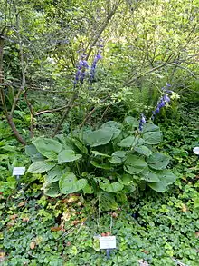 Hosta kiyosumiensis is a species of Hosta, found in Japan from Kanto south to Chubu and Kansai, and encompassing the entire central part of Honshu. Plants range from 30 to 45 cm in diameter, and up to 25 cm high. Petiole is 7.5–10 by 0.7 cm, erect, broadly grooved, keeled, triangular in cross section, green in color and at the base barely purple dotted. Leaves are 10–15 by 5–7.5 cm. Specimens exhibit many different leaf shapes from narrow-lanceolate to widely-ovate, with straight or wavy margins.